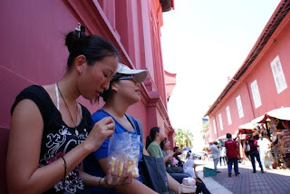我们就这样吃饱就走,走累了、饿了,就随缘的找东西吃。。这样毫无规划地继续以11号巴士狂走在马六甲街道上,闻到香味还蛮不错的炒粿条,就潇洒地叫来吃。。